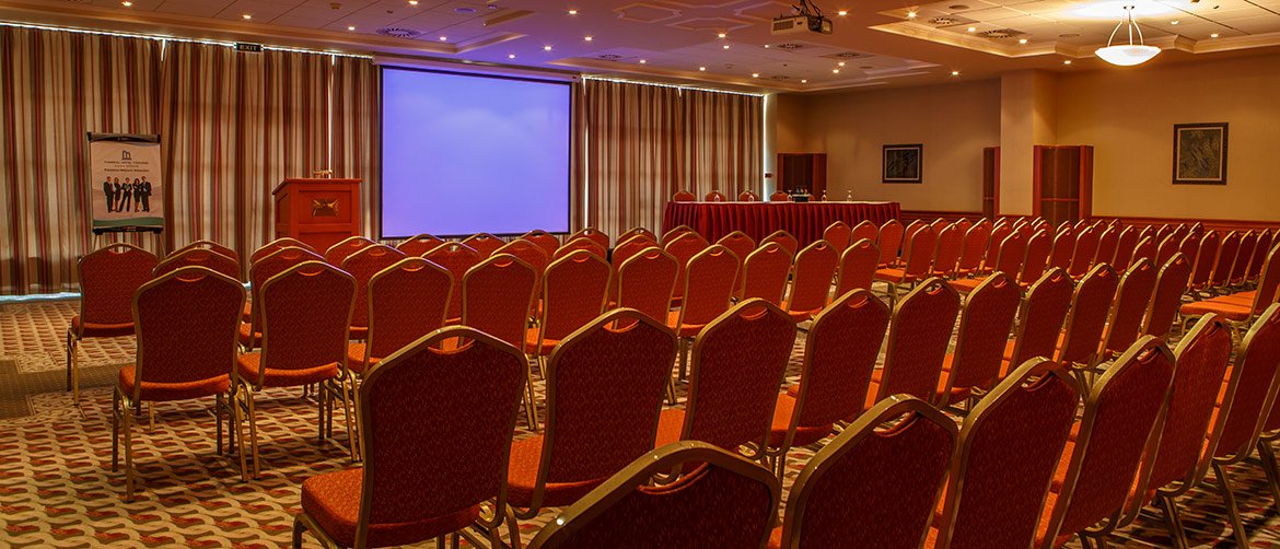- 10 db, különböző méretű, részben összenyitható konferencia- és szekcióterem
